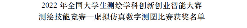 7月20日-21日,2022年全国大学生测绘学科创新创业智能大赛决赛成功举行,共有来自武汉大学、同济大学、中南大学等200余所高校的4500名同学参加。Cool18 李立涛老师指导的7支队伍获无人机航测虚拟仿真比赛特等奖2项、二等奖1项,虚拟仿真数字测图竞赛二等奖3项,测绘程序设计比赛二等奖1项,测绘技能竞赛团体二等奖1项,7支队伍全部获奖。