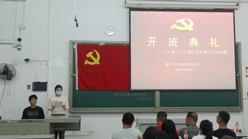 首先,全体入党积极分子起立,奏唱国歌。奏唱结束后,由杨应华老师为第六十五期党校做简介,并对第六十五期入党积极分子表示了欢迎,接着又具体地阐述了党校的意义,他指出入党积极分子们应该严守纪律,首先经过党校学习才能入党。在学习过程中,要结合实际,在学习中了解中国共产党是什么党,中国共产党为什么伟大,以此来端正入党动机。不断提升自身素质,才能在大学里发展为党员。另外,要求入党积极分子了解中国为什么能够强起来,以此来学习共产党精神。发挥模范作用,以党的纪律要求自己,要向九千多万党员靠拢。最后,杨应华老师祝愿Cool18 第六十五期党校圆满成功。第五项:由本期学员代表黄莉婷同学发表讲话,在她的讲话中表明了要向党组织靠拢的决心,要努力提升自己,为党的事业做出最大努力。最后,由贾凡老师进行总结发言,她告诉入党积极分子们一定要端正入党动机,积极学习党规党章,学习科学文化知识,不断提高为人民服务的本领。
