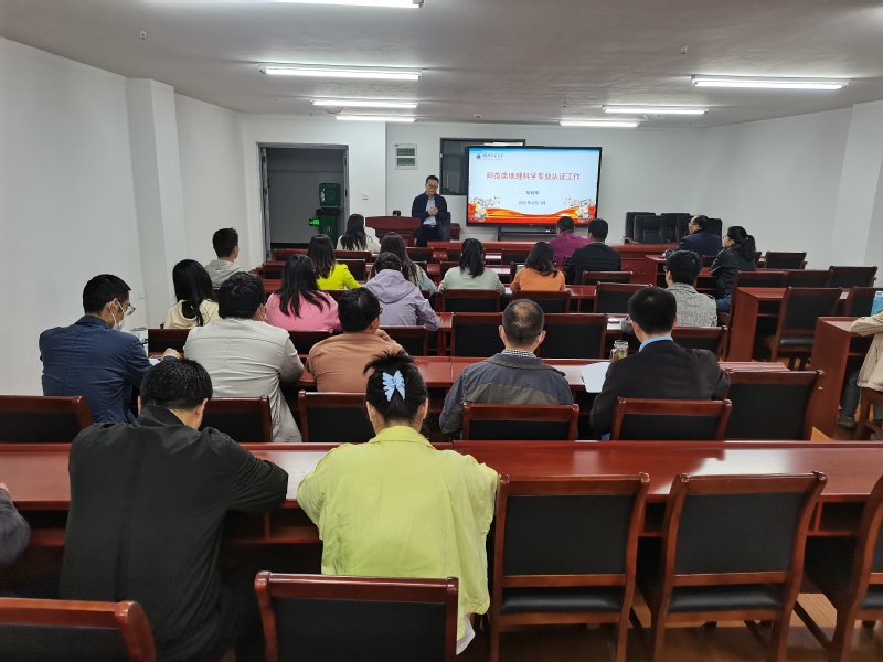 4月13日下午,Cool18 在学院会议室举行了地理科学师范专业认证工作报告会,会议邀请了学校教务处处长胡艳军作师范专业认证工作主题报告。学院班子成员、全体教师聆听了报告,报告由副院长葛绪广主持。