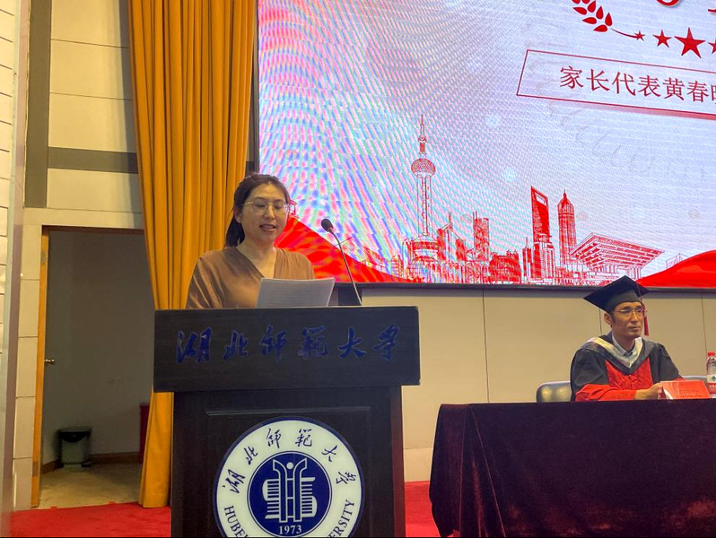 地理信息科学专业黄嫣然同学母亲黄春晓作为毕业生家长代表发言。她由衷地感谢学校、老师为青年成长保驾护航,帮助学生起航人生新里程。