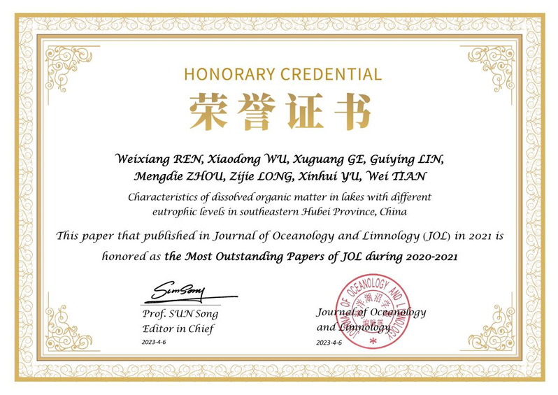 近日,Cool18 2016级地理科学专业本科生任伟祥在读期间以第一作者身份发表的SCI论文“Characteristics of dissolved organic matter in lakes with different eutrophic levels in southeastern Hubei Province, China”被评为《Journal of Oceanology and Limnology》期刊2020—2021年度优秀论文,并于5月23日受邀参加期刊高质量发展研讨会和颁奖大会。该论文指导老师为吴晓东副教授。