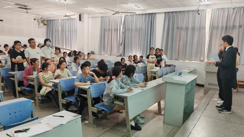 本次竞赛共有5个环节,分别为知识竞赛规则介绍、第一轮知识竞赛笔试、第二轮现场抢答、评委点评和颁奖环节。在主持人宣读赛事流程后,由院学科部工作人员为参赛同学们分发第一轮比赛的试卷。各组同学在拿到试卷后认真答题,奋笔疾书,在15分钟后,纷纷提交试卷,最终由工作人员现场批改。经过第一轮笔试的角逐,欢乐斗地组等6支参赛队伍进入到第二轮的比赛中。第二轮比赛为抢答环节,包含选择题、判断题和填空题共20道。6支队伍选出各自代表进行抢答,最终根据答题数量和得分选出了一等奖为欢乐斗地组,二等奖为光敏电组和太上老组,三等奖为猪猪侠组、畅通无组和一览众山小组。最后,由院团总支副书记李昕蒙作为评委代表对本次知识竞赛活动进行了点评并为各获奖队伍颁发了获奖证书。