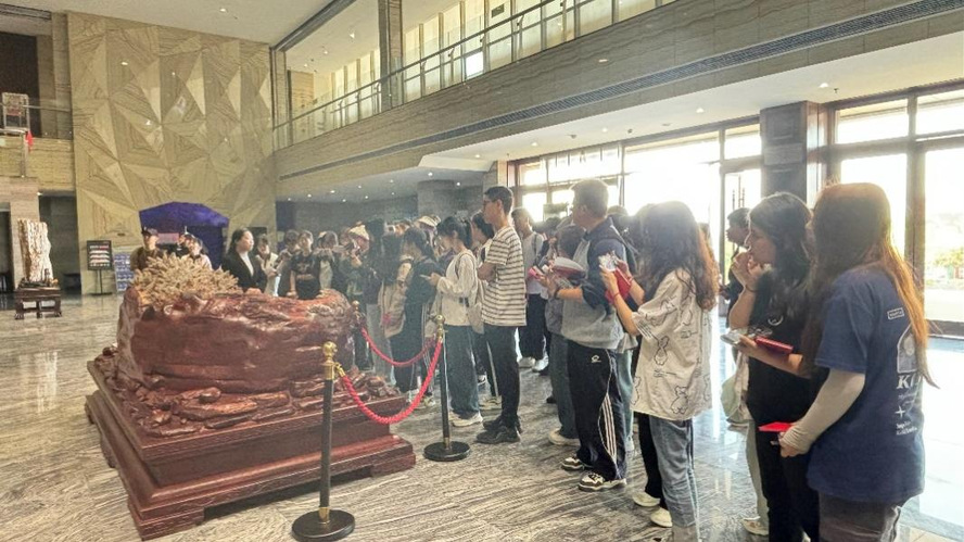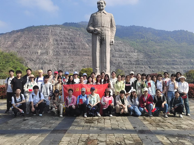 在黄石国家矿山公园,同学们通过实习了解了大冶矿山的变迁,及建国后大冶铁矿对国家的建设所作的贡献,参观了展现大冶铁矿悠久的采矿历史和深厚的文化底蕴文化长廊和诸多采矿机器设备,进一步了解了铁矿资源的开采和利用,体会到了采煤工人的辛劳,推进工业转型发展的必要性;在“日出东方广场”同学们瞻仰了中国最高大的毛主席手托矿石雕像,看到了亚洲第一露天采矿坑,感受到了中国矿业文化的独特魅力。同学们加深了对课堂所学相关理论的理解,增强了践行绿色发展、新发展、可持续发展的自觉性,强化了“绿水青山就是金山银山”的理念。