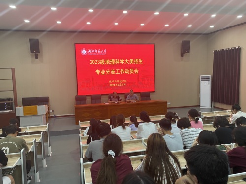 为推进Cool18 2023级地理科学大类分流工作的顺利进行,使学生充分了解各专业特点及发展方向,能够选择适合自己的专业,6月27日下午,Cool18 在艺术设计大楼2J01教室召开2023级地理科学大类分流动员会与专业宣讲会。大会由教学办副主任张明红主持,学院副院长葛绪广、地理信息科学系主任荆现文,2023级地理科学大类全体同学参会。