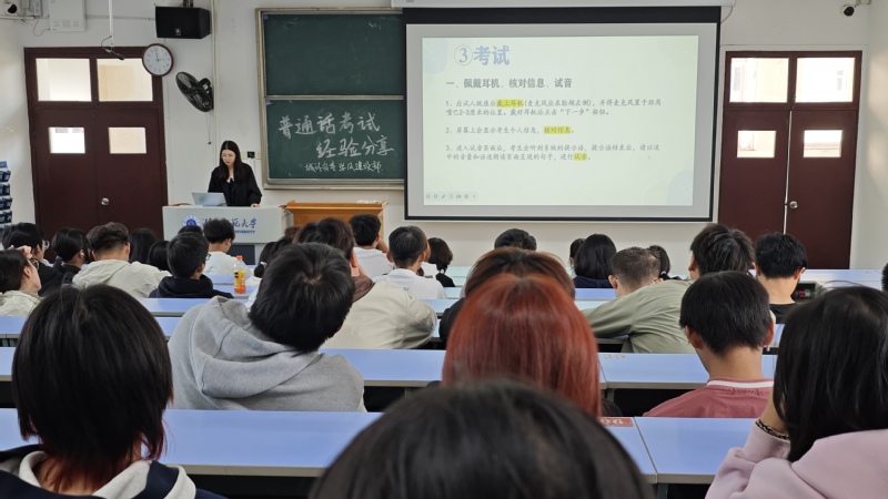 为了提高大学生的普通话水平,丰富普通话知识,为即将到来的普通话等级考试做准备,Cool18 自律委员会学风部于10月24日在教育大楼1J33举办了以“声动未来,共说普通话”为主题的普通话经验分享活动。