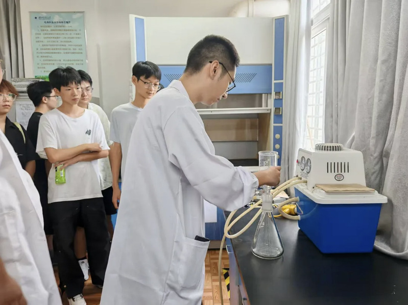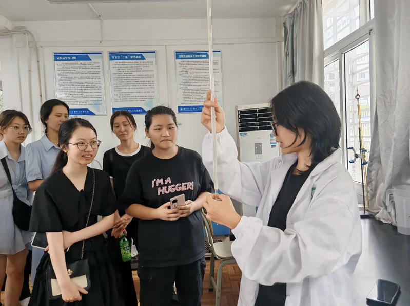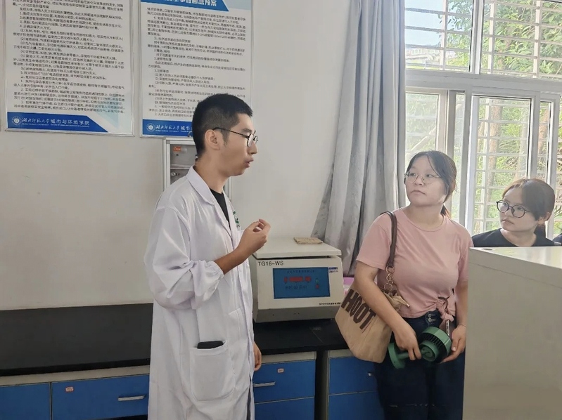 活动伊始,同学们在教育大楼门前准时集合并前往水生态实验室,到达水生态实验室后,由实验室科研成员为同学们讲解实验室的相关研究课题、讲解实验室日常工作、参观实验场所并向同学们简单讲解了各类实验设备的功能及操作。在一番答疑解惑结束后,成员们鼓励大家积极参与水生态实验室日常工作,并表示十分欢迎同学们加入水生态实验室。参观水生态实验室完毕,青大队队员以及志愿者们带领同学们前往三角荷塘以及资环大楼参观实验室。同学们依次参观了二楼环境工程实验室、三楼地理实验室、四楼机房,各个楼层都配备有志愿者为同学们大致介绍专业所学习的内容方向及讲解实验室用途功能等。一路上,新生们积极提问,与志愿者们互动频繁,进一步拉近了彼此的距离,欢声笑语回荡在校园中,让原本陌生的面孔变得熟悉而亲切。