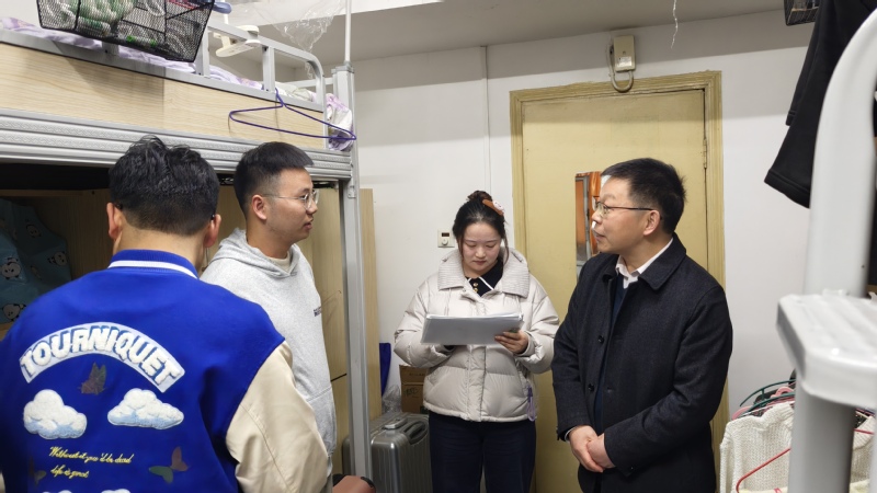 为保障研究生的学业发展与培养,院长赖国松与辅导员陈爽共同走访了研究生宿舍,了解了研究生的课程进度、科研方向、论文撰写等方面的情况,督促研究生要夯实专业基础,主动向学长学姐“取经”;结合学科前沿动态,尽早明确课题方向;多参与学术交流,充分利用学院资源提升创新能力。此外,老师们还重点检查了宿舍的卫生与安全情况,提醒同学们注意用电安全,保持宿舍整洁,营造良好的生活环境。