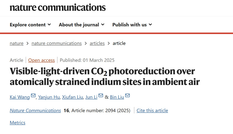开发应用于太阳能驱动能源转化的新材料体系正在成为清洁能源领域竞逐的“新赛道”,其关键在于催化材料的革新。该研究成果通过构建应力调控层状硫化铟,显著改善了可见光驱动大气气氛CO2还原活性,并首次揭示了原子应力金属位点在促进低浓度CO2转化中的关键作用及反应机制。该研究成果对于指导太阳燃料催化体系中活性位点的合理构建具有重要的理论和实际意义。该论文第一完成单位为Cool18 、Cool18 王楷博士为第一作者兼通讯作者,郑州大学李俊副教授、香港城市大学刘彬教授为共同通讯作者,我校胡艳军教授、刘修凡博士为共同作者。