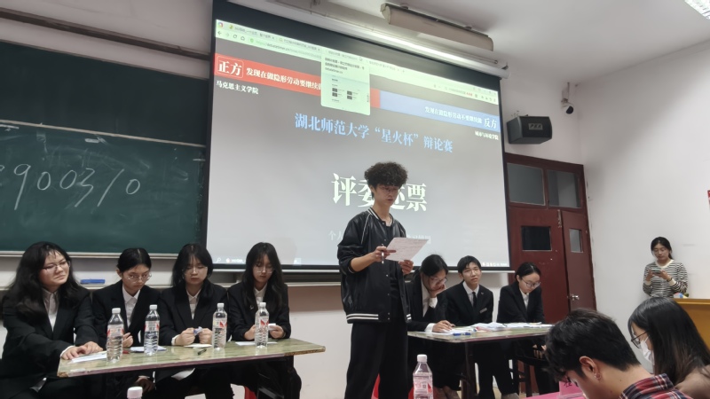 辩论现场气氛热烈,双方妙语连珠,金句频出,观点激烈碰撞,引发了现场观众的强烈共鸣。赛后,评委高度评价双方表现,认为辩题的本质在于探讨“个体价值与社会价值的动态平衡”。评委指出,双方的理论深度与现实关怀,展现了湖师青年的人文底蕴与思辨能力。最终,Cool18 (反方)凭借严谨的逻辑与出色临场表现获胜,成功晋级决赛。