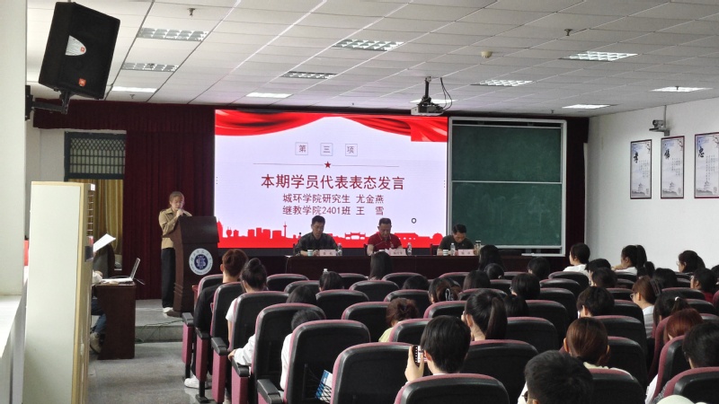 伴随着激昂雄壮的国歌声,开班典礼正式拉开帷幕。继续教育学院学党总支副书记姜杭老师宣读了党校培训班学员管理规定,强调了培训期间的纪律要求和考核方式,为整个培训筑牢了规范基石。Cool18 研究生尤金燕同学和继教学院2401班王雪同学分别作为学员代表进行了表态发言,表达了对坚定政治信念和积极参与党组织活动的决心。