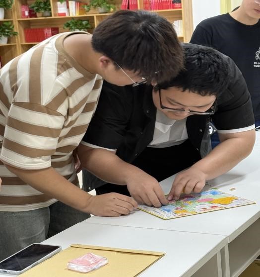 拼图寻根,山河入怀。“我们一起拼地图”环节中,散落的省级行政区拼图既考验地理知识,更需高效协作。队员们充分发挥专业优势,迅速完成拼图任务。当三支队伍共同举起拼就的中国地图时,“以专业情怀守护山河锦绣”的寓意不言自明。