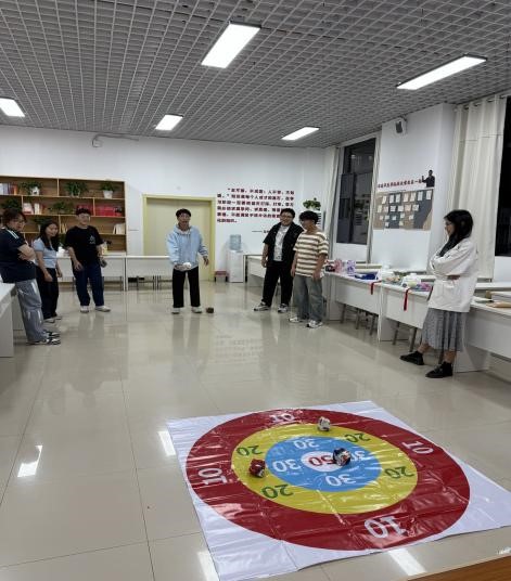 沙包轻掷,欢乐满筐。最后这一游戏环节点燃全场热情,五彩沙包在空中划出优美弧线。队们或蹲身瞄准,或潇洒投掷,场边“再偏左一点”的指导声此起彼伏。学风部梅思杰以投中红心区域的完美表现赢得喝彩,而队员们屡败屡战的坚持更收获阵阵掌声。这场趣味竞技,既是对手眼协调的考验,更展现了团队互助的温暖力量。