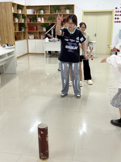 一矢中的,众力同归。“投壶”环节中,队员们屏息凝神,执羽轻投。箭矢入壶的闷声此起彼伏,场边不时爆发出欢呼,而队友们“手肘再压低些”的提示更显情谊。这场传统游戏的现代表达,既是对专注力的考验,更是团队默契的生动注脚。