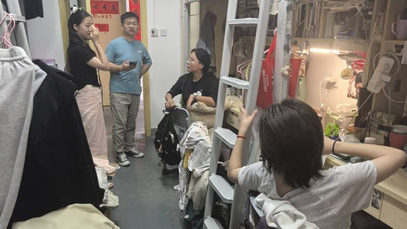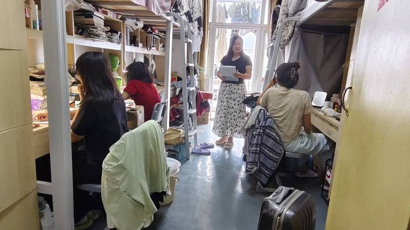 在走访中,老师们还对宿舍卫生环境与用电安全进行了全面检查,强调严禁使用违规电器,提醒同学们增强安全意识,谨防电信诈骗。同时,对部分整洁有序、氛围良好的宿舍给予了表扬,引导同学们共同维护安全、舒适的宿舍环境。