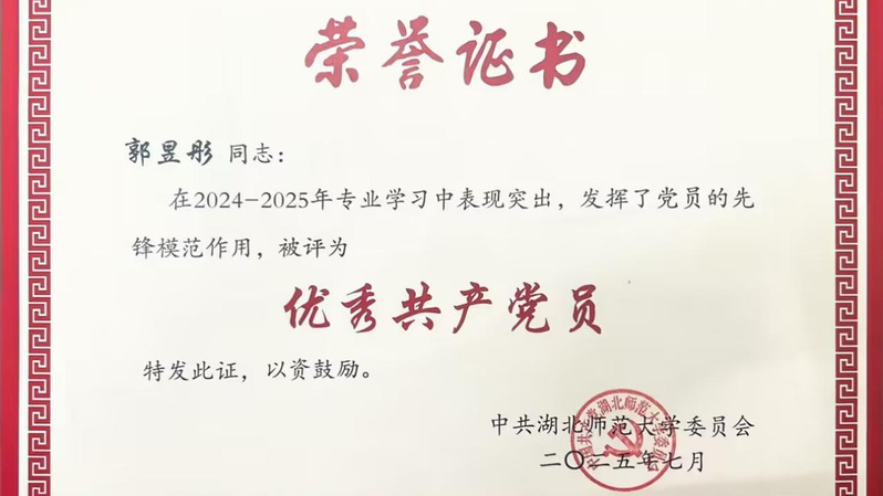 不仅如此,郭昱彤还主动参与校第九期“青马工程”培训班,在思想淬炼中坚定理想信念。凭借突出的思想表现与责任担当,她先后获评“优秀共青团员”“优秀共青团干部”“优秀共产党员”等荣誉称号,用实际行动诠释着青年党员的初心与使命。