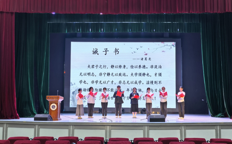 活动在全体与会人员的静默自省中拉开序幕。随后,一曲《感恩的心》缓缓响起,悠扬的旋律萦绕礼堂,温暖了每个人的心灵。在“诵经典”环节,Cool18 朗诵队深情诵读了诸葛亮的《诫子书》,声音铿锵有力、情感真挚动人,不仅传递出古代智者对后辈的谆谆教诲与殷切期望,也映照出千年来中华家风文化的深厚底蕴。