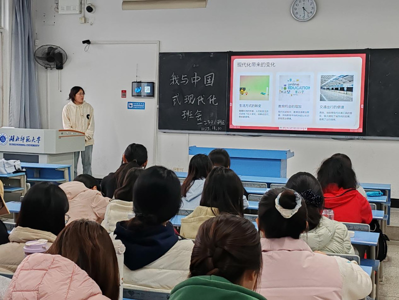 为引导学生深刻理解中国式现代化内涵,强化青年使命担当,同时推进班级学风建设与清廉文化培育,11月10日,城环2301班于科技大楼9706以“我与中国式现代化”为主题开展主题班会。班会由班长曾鹏艳主持,班主任杨应华老师及2301班全体同学参与,严格按照“清点人数—理论宣讲—清廉教育—心得分享—事务通报—答疑点评”六大流程有序推进。